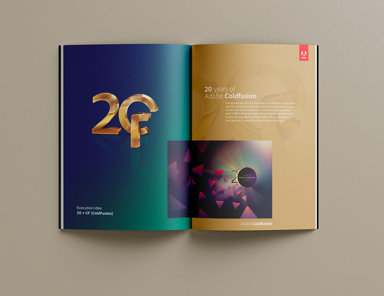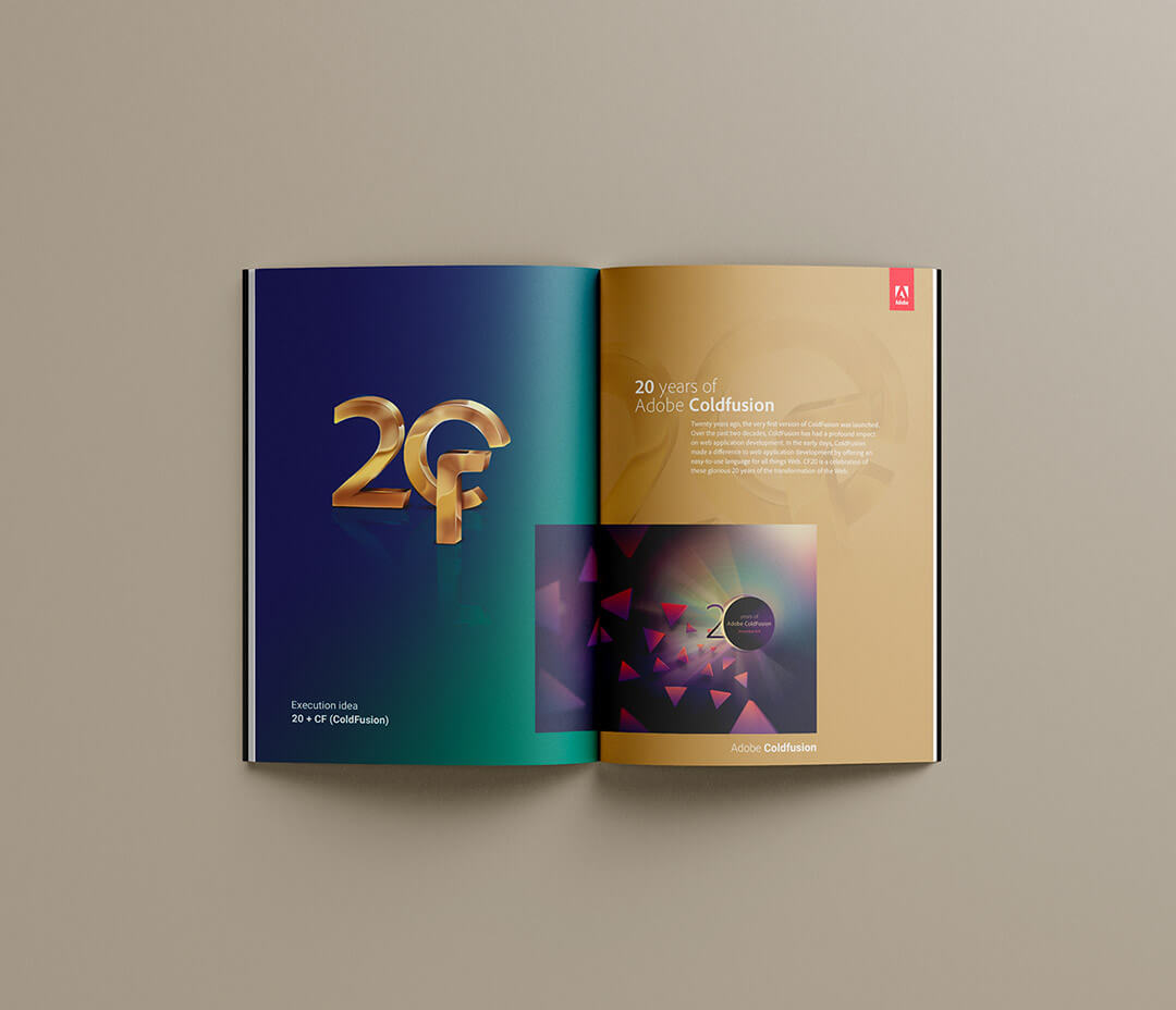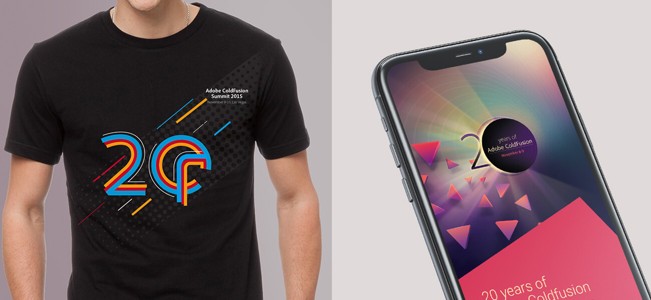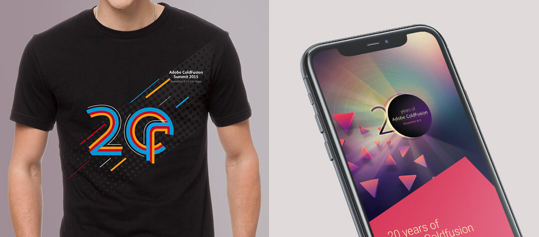 For the 20th Anniversary of their ColdFusion software, I designed and developed the complete visual language, right from the logo unit to the merchandise design, with a unifying theme that centred on celebrating progress while also looking forward to the future.